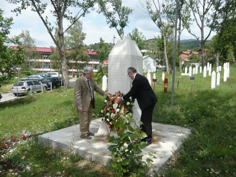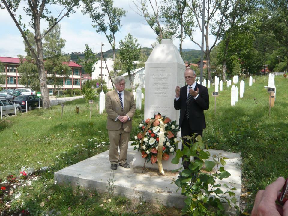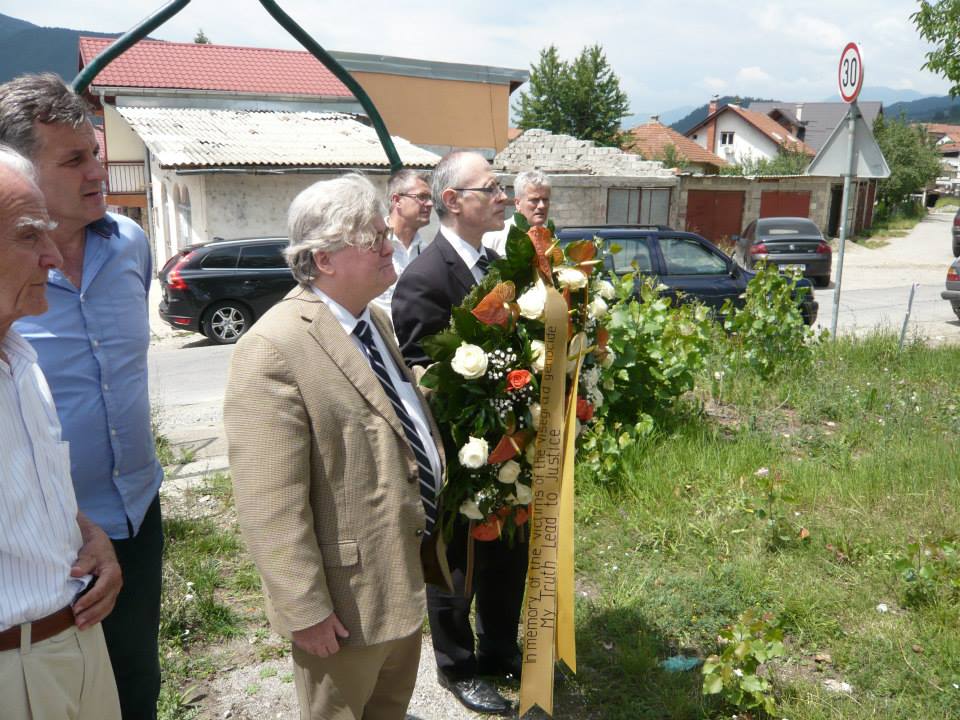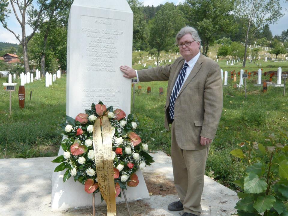 I am placing a wreath today at the memorial in Stražište cemetery in solemn memory of the victims of the genocide in Višegrad. I am doing so in cooperation with the University of Sarajevo Institute for the Research of Crimes Against Humanity and International Law; the Institute for Research of Genocide, Canada; and the Bosnian American Genocide Institute and Education Center, Chicago, IL, USA. I thank them for their support. I am also grateful to be joined in Višegrad by local citizens and activists including Bakira Hasečić and Bilal Memišević. Finally, I thank Prof. Dr. Smail Čekić for all his help with planning and arrangements.