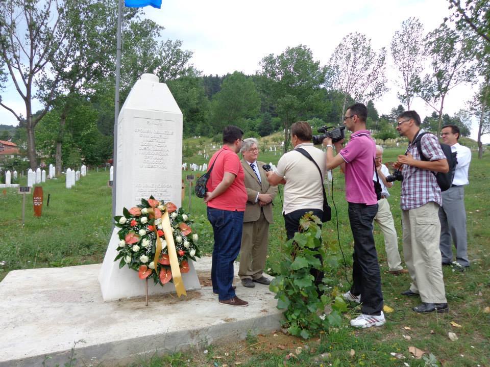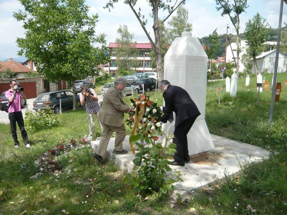 Today we condemn and we resist the culture of genocide denial in Višegrad and in Republika Srpska by laying our wreath at the memorial in the Stražište cemetery. Our wreath reads: “To the Memory of the Victims of the Višegrad Genocide: May Truth Lead to Justice.” We would also like to recognize and honor the citizens and activists who created this memorial in the cemetery in order to tell the truth about the genocide. These citizens and activists have inspired us because they have kept their hearts open to the hope that the truth will lead to justice. We thank them for their courage. By our presence we stand with them and we affirm the right of all refugees and displaced persons to return to their homes without risk of intimidation, persecution or discrimination. We would like to express our hope for the future of a unified multicultural Bosnia and Herzegovina, operating as a democratic society under the rule of law, and fully integrated within the region. We owe nothing less to the victims of the Višegrad genocide.