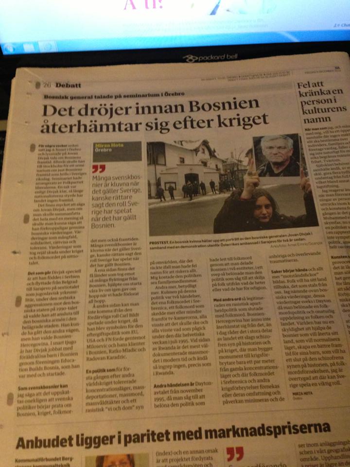 Den här texten publicerades idag 06-12-2013 i Nerikes Allehanda på debattsidan. Sida 26 med titeln “Det dröjer innan Bosnien återhämtar sig efter kriget.” Texten skrev jag med anledning av Jovan Divjaks besök i Örebro 21 november 2013.