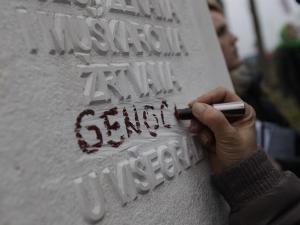 After the word genocide had been removed from the tombstone a bosniak woman took out her lipstick and wrote the word on the same spot from which it had been previously removed.