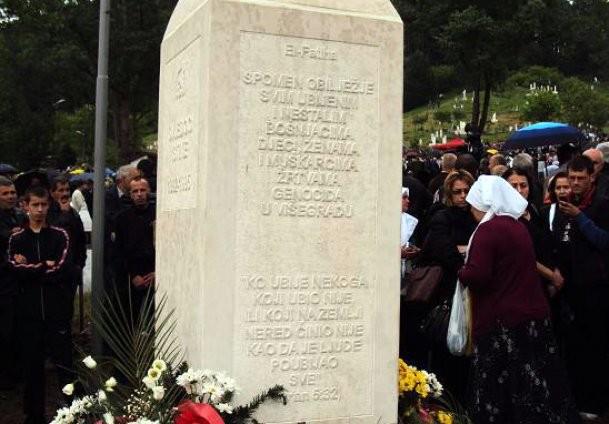 Some three thousand people were killed in Visegrad during the war, and the crimes were confirmed by amongst others the International Tribunal for the former Yugoslavia as well as courts in Bosnia and Herzegovina ( See: Milan and Sredoje Lukic Verdict ) While Visegrad is being destroyed by the construction of Andricgrad, presenting a pseudo-historic look on the history of the region. In a attempt to wipe out any trace of the Bosniak community that once lived in Visegrad, memorial are being erected to wartime Russian volunteers while the local authorities frown upon the word “genocide” on the memorial tombstone at Straziste cemetery.