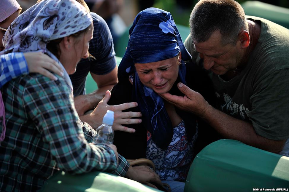 The final farewell to the victims took place in Kozarac, a town close to Prijedor and like Prijedor it was hard hit by the Serb onslaught in spring and summer of 1992. Denisa Duratović-Hegić who was eight years old when the war started and lost eight relatives spoke at the gathering, saying that “what happened to them must never happen to anyone again” That July on the door step of my uncle´s house I found my murdered mother, they killed my mother and father, Ešef and Zemira, my grandparants, my uncle´s That day they killed my uncle´s sons, that day I found out just how cruel people can be”